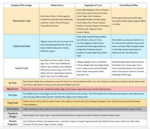 In TCVM food is not just about calories and nutritions facts it’s about energetic properties, and each food has different energetic properties. The three energy level are Warming/Neutral/Cooling